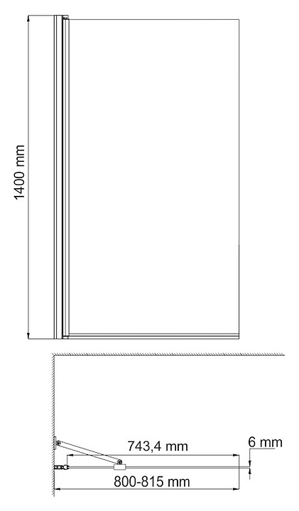 Шторка на ванну Wasserkraft Berkel 48P01-80 BLACK Fixed 80х140 см, профиль черный