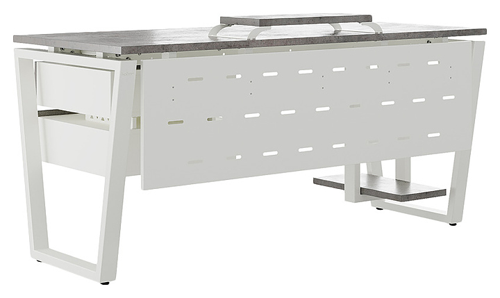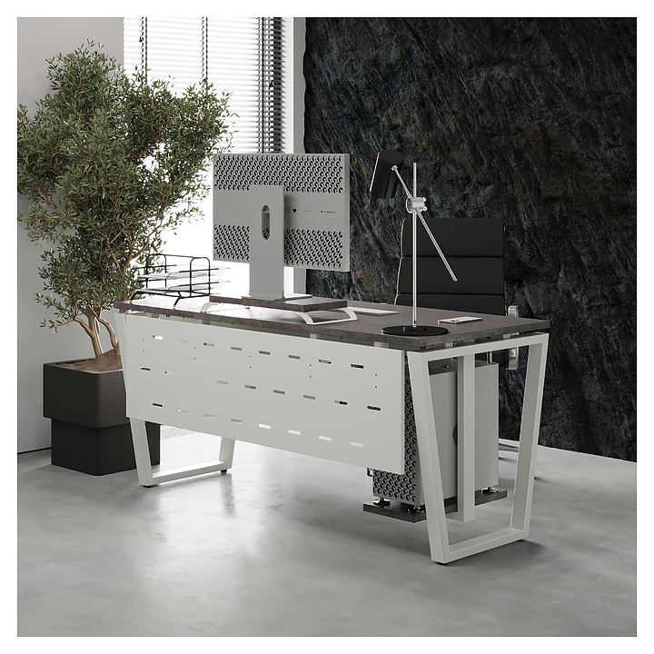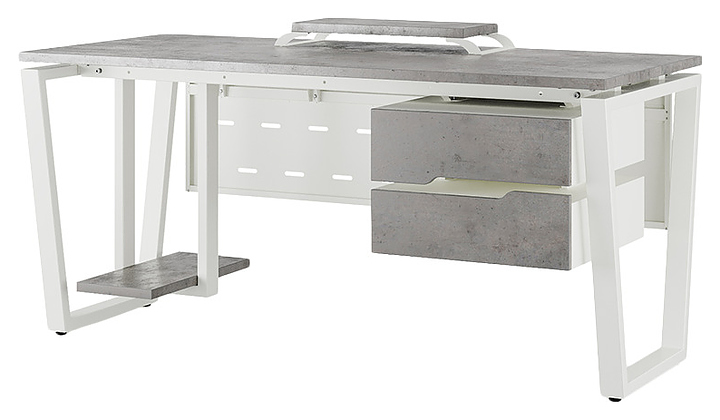 Офисный стол Кобор OTR-140/80 white/chicago используется в офисных помещениях и кабинетах руководителей. Модель оснащена опорами в форме обратной трапеции. Каркас выполнен из металла, выкрашенного в цвет белый муар (RAL9016), столешница – из ламинированной древесно-стружечной плиты (ЛДСП) цвета бетон чикаго (F186 ST9). Опции (заказываются отдельно):