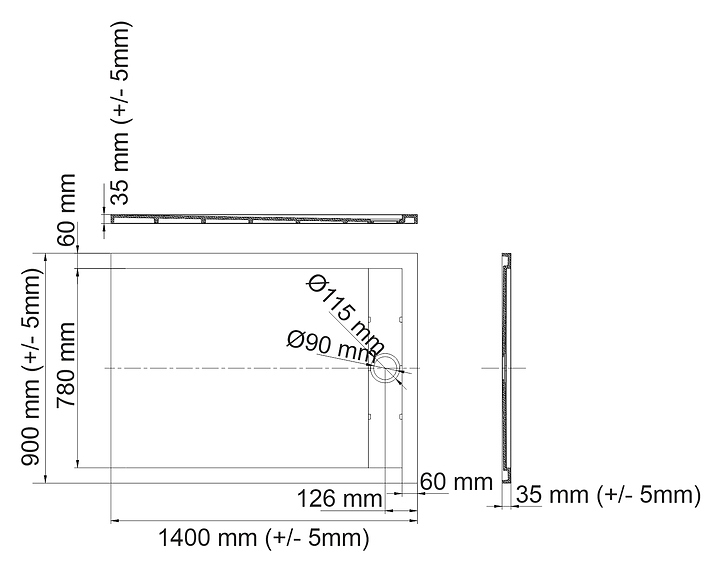 Поддон душевой Wasserkraft Wiese 84T36 140х90 см, серый матовый