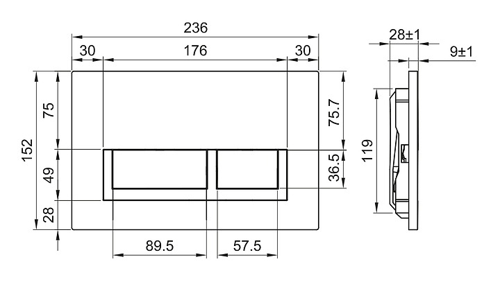 Кнопка смыва OLIVE'S SIERRA SR419C предназначена для установки с инсталляциями. Модель имеет прямоугольную форму и 2 кнопки. Изделие выполнено из ABS-пластика. Дополнительные характеристики: