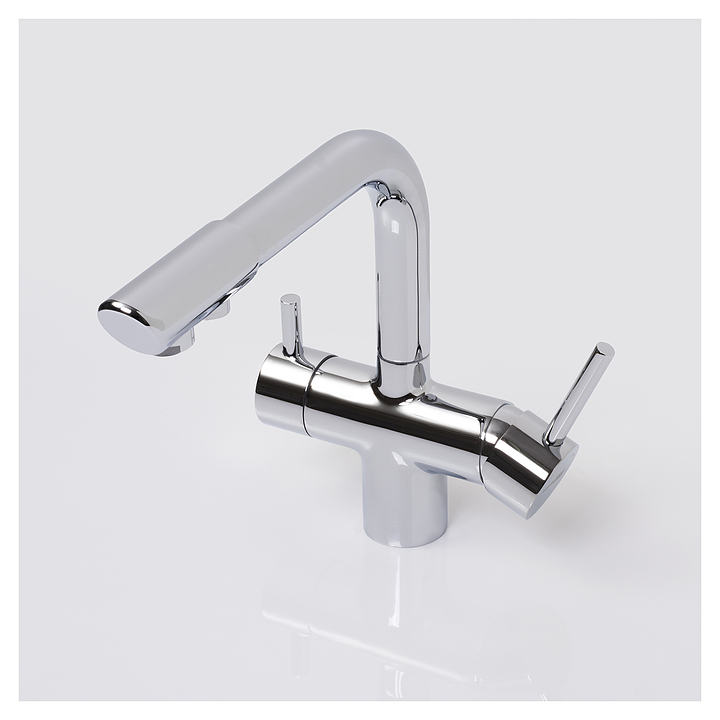 Смеситель Wasserkraft A8017 предназначен для использования в кухонных помещениях для подачи горячей и холодной воды. Модель оснащена совмещенным изливом для проточной и фильтрованной воды, керамическим картриджем, обеспечивающим плавный ход рычага смесителя, контроль и точность при выборе напора и температуры воды, а также аэратором для создания мягкой ровной струи без разбрызгивания. Изделие выполнено из латуни, отличающейся прочностью, долговечностью и устойчивостью к перепадам температур. В комплект поставки входят гибкая подводка, пластиковый уплотнитель для монтажа и набор для монтажа. Трубка для фильтра в комплект поставки не входит и приобретается отдельно. Особенности: