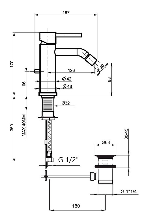 Смеситель для биде WEBERT Elio EL840102560 черный