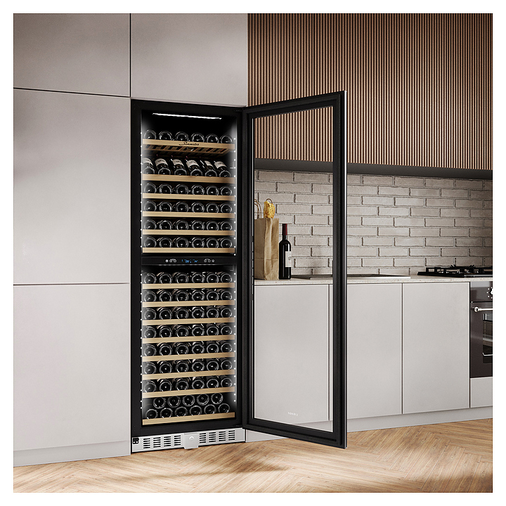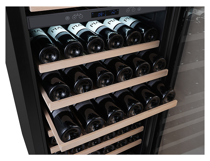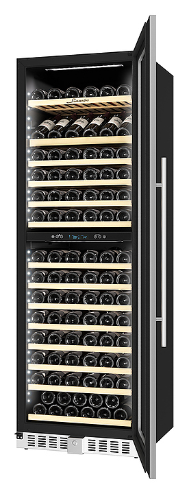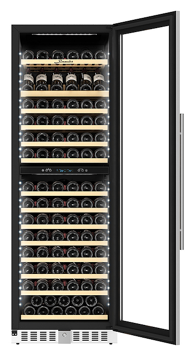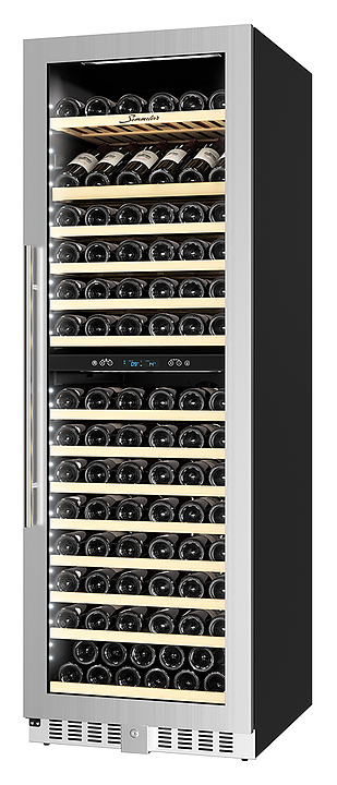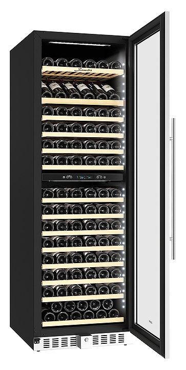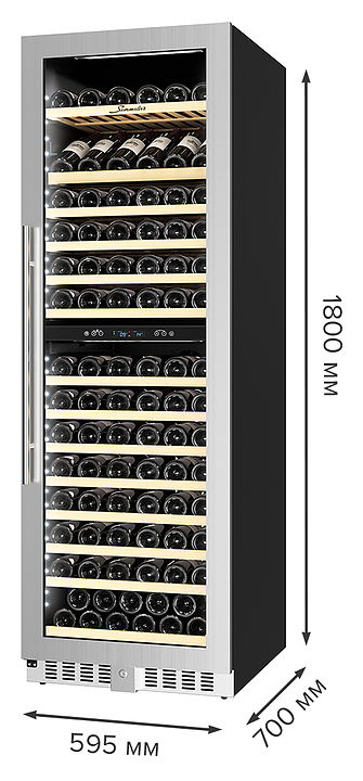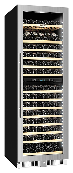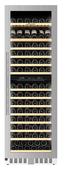 Винный шкаф Libhof Sommelier SMD-165 Silver предназначен для хранения при оптимальных условиях бутилированного вина различных сортов в барах, ресторанах, специализированных магазинах, подсобных складских помещениях, а также в домашних условиях. Модель оснащена холодильной камерой с 2 независимыми температурными зонами, запираемой на ключ распашной дверью на скрытых внутренних петлях, длинной вертикальной рукояткой, прозрачным дымчатым обзорным стеклом и внутренней сенсорной панелью управления с цифровым дисплеем. Корпус выполнен из металла с антикоррозийным покрытием черного цвета, рама двери, рукоятка и цокольная решетка – из металла с серебристой поверхностью, полки – из массива буковой древесины. В комплект поставки входят 15 полок с направляющими для бутылок, крепеж для рукоятки, 2 ключа от дверного замка и инструкция по эксплуатации. Особенности: