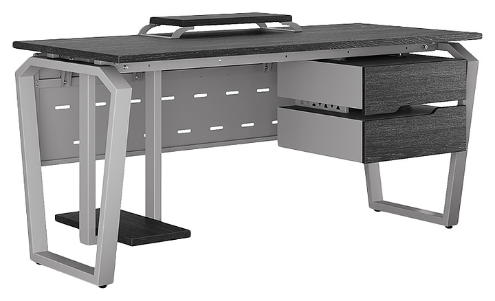 Офисный стол Кобор TB-140/80 aluminum/glazed используется в офисных помещениях и кабинетах руководителей. Модель оснащена опорами в форме обратной трапеции со скошенными верхними углами. Каркас выполнен из металла, выкрашенного в цвет алюминиевый металлик (RAL9006), столешница – из ламинированной древесно-стружечной плиты (ЛДСП) цвета черный дуб (H3178 ST37). Опции (заказываются отдельно):