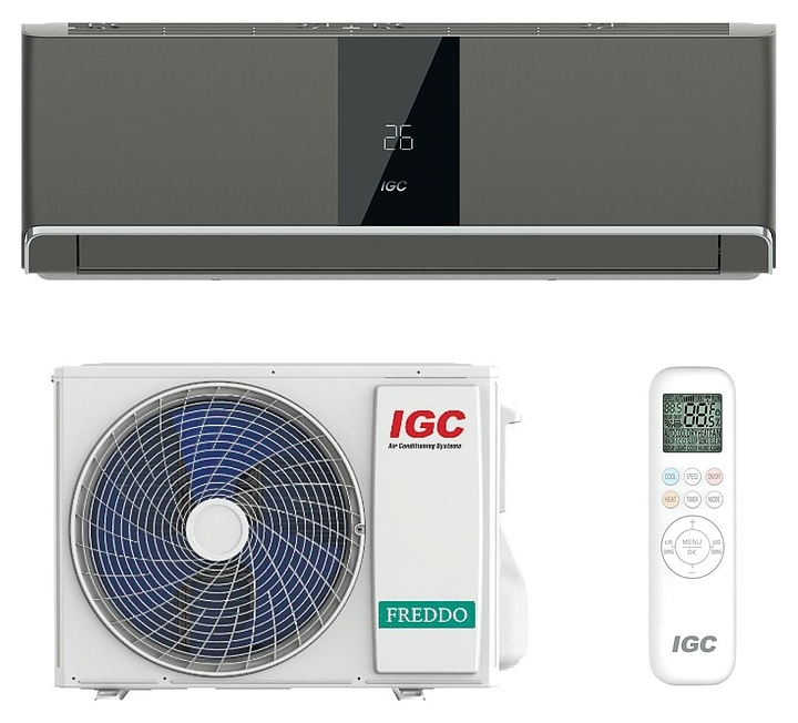 Настенная сплит-система IGC RAS-V09RTF серии Freddo Grey предназначена для создания комфортных микроклиматических условий в жилых, служебных, административных, офисных и других помещениях. Кондиционер не только охлаждает или обогревает воздух, но и очищает его от посторонних запахов и нежелательных примесей. Модель оснащена встроенной LED-панелью индикации и инфракрасным пультом для управления всеми функциями на расстоянии. Корпус выполнен из ABS-пластика. Особенности: