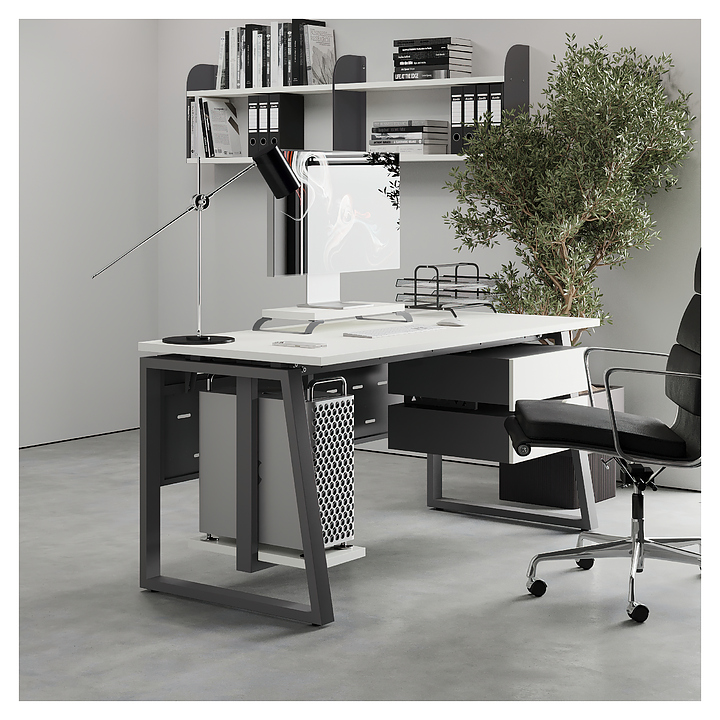 Офисный стол Кобор TS1-160/70 aluminum/premium используется в офисных помещениях и кабинетах руководителей. Модель оснащена опорами в форме наклонной трапеции. Каркас выполнен из металла, выкрашенного в цвет алюминиевый металлик (RAL9006), столешница – из ламинированной древесно-стружечной плиты (ЛДСП) цвета белый премиум (W1000 ST9). Опции (заказываются отдельно):
