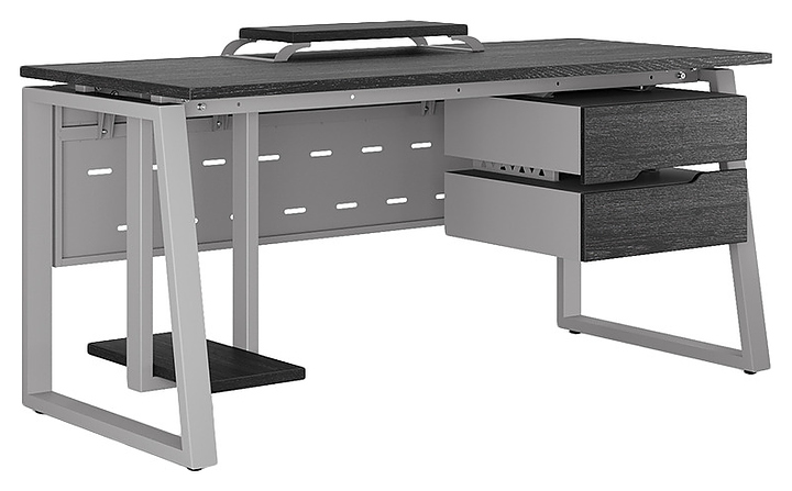 Офисный стол Кобор TS1-160/70 aluminum/glazed используется в офисных помещениях и кабинетах руководителей. Модель оснащена опорами в форме наклонной трапеции. Каркас выполнен из металла, выкрашенного в цвет алюминиевый металлик (RAL9006), столешница – из ламинированной древесно-стружечной плиты (ЛДСП) цвета черный дуб (H3178 ST37). Опции (заказываются отдельно):