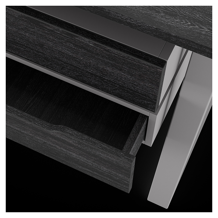 Офисный стол Кобор TS1-160/80 aluminum/glazed используется в офисных помещениях и кабинетах руководителей. Модель оснащена опорами в форме наклонной трапеции. Каркас выполнен из металла, выкрашенного в цвет алюминиевый металлик (RAL9006), столешница – из ламинированной древесно-стружечной плиты (ЛДСП) цвета черный дуб (H3178 ST37). Опции (заказываются отдельно):