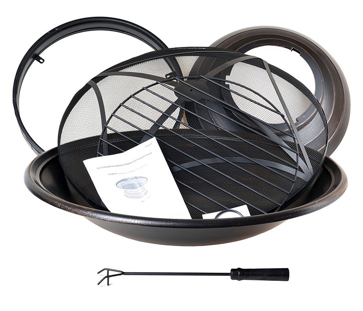 Костровая чаша Hügett Fire Pit 51158 используется для безопасного разведения огня на улице на открытых территориях загородных домов, в зонах барбекю и на турбазах, в беседках, парках и лесополосах, на летних площадках предприятияй общепита. Устройство дает жар для приготовления пищи, локально обогревает в условиях открытого пространства, является источником света для создания уютной вечерней атмосферы, а так же украшает территорию. Модель оснащена устойчивой опорой, исключающей риск переворачивания. Глубокая емкость для костра выполнена из жаропрочной высококачественной стали. В комплект поставки входят кочерга для помешивания углей, искроулавливающая сетка и решетка-гриль. Особенности: