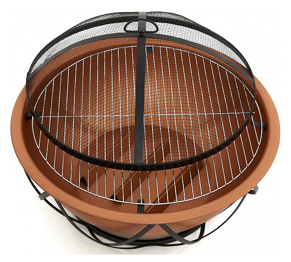Костровая чаша Hügett Fire Pit 62241 используется для безопасного разведения огня на улице на открытых территориях загородных домов, в зонах барбекю и на турбазах, в беседках, парках и лесополосах, на летних площадках предприятияй общепита. Устройство дает жар для приготовления пищи, локально обогревает в условиях открытого пространства, является источником света для создания уютной вечерней атмосферы, а так же украшает территорию. Модель оснащена подставкой, придающей изделию изысканный и изящный вид. Подставка и глубокая емкость для костра выполнены из жаропрочной высококачественной стали. В комплект поставки входят кочерга для помешивания углей, искроулавливающая сетка и решетка-гриль. Особенности: