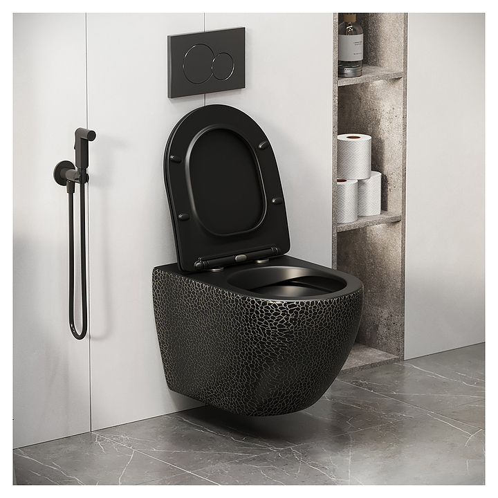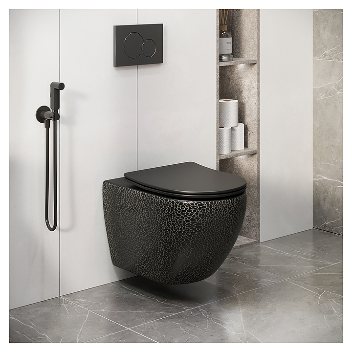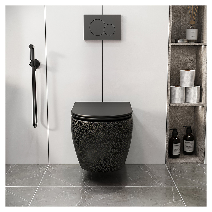 Унитаз подвесной с сиденьем Grossman Color GR-4411BBLS черный крокодил