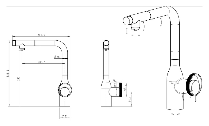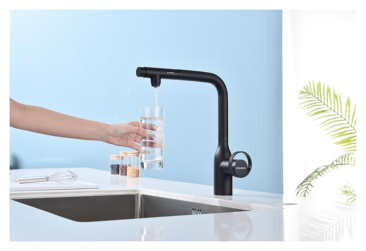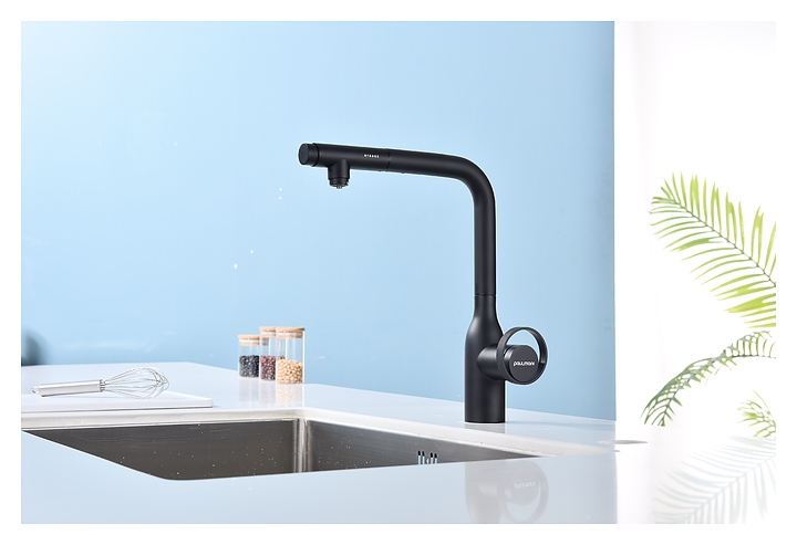 Смеситель Paulmark Urban Ur213104-401 предназначен для подачи горячей и холодной воды в кухонных помещениях. Модель оснащена вытяжным изливом и керамическим картриджем, обеспечивающим плавный ход рычага смесителя, контроль и точность при выборе напора и температуры воды. Фильтрованная вода подается через отдельные трубку и аэратор, что исключает смешивание с водопроводной водой. Изделие выполнено из латуни, отличающейся прочностью, долговечностью и устойчивостью к перепадам температуры. Дополнительные характеристики: