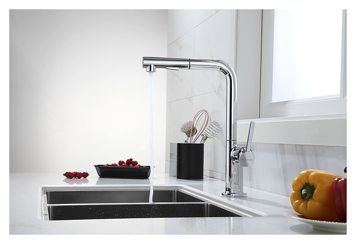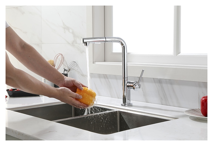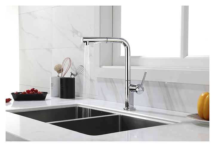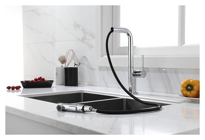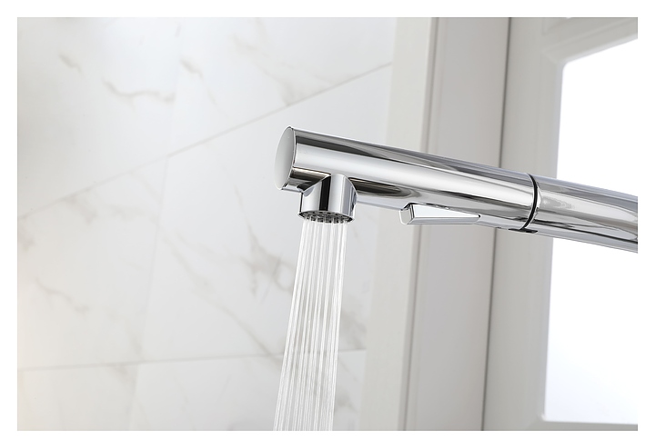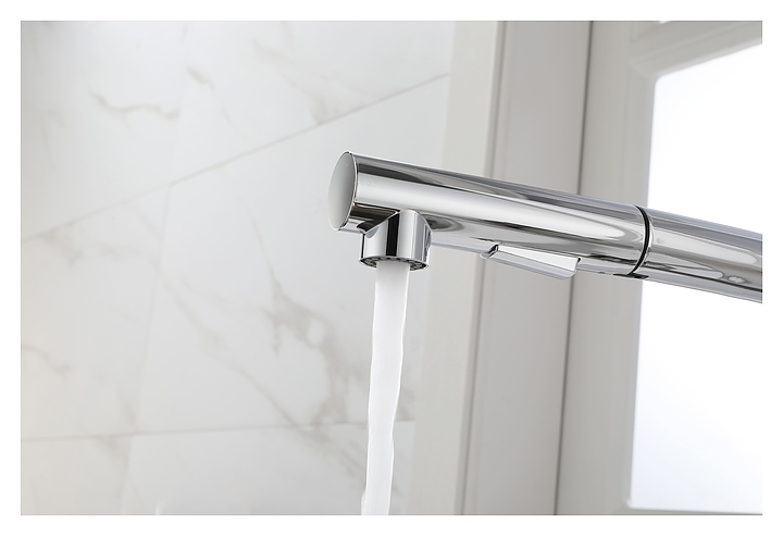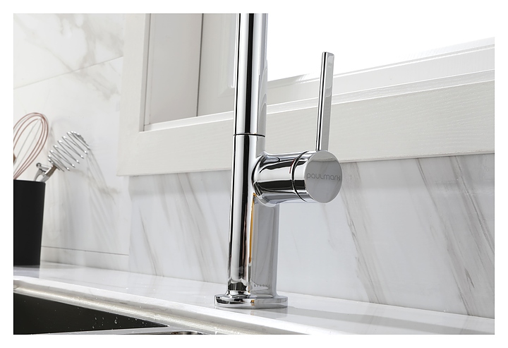 Смеситель Paulmark Neo Ne214419-CR предназначен для подачи горячей и холодной воды в кухонных помещениях. Модель оснащена вытяжным изливом и керамическим картриджем, обеспечивающим плавный ход рычага смесителя, контроль и точность при выборе напора и температуры воды. Изделие выполнено из латуни, отличающейся прочностью, долговечностью и устойчивостью к перепадам температуры. Дополнительные характеристики: