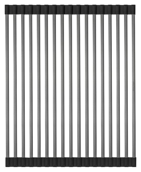 Ролл-мат Paulmark Pro R405-GM используется в качестве подставки для горячей посуды, сушилки для овощей и фруктов или коврика для разморозки продуктов. Благодаря двусторонним силиконовым наконечникам модель защищает поверхность и может быть размещена на столешнице, крыле мойки или в специальных направляющих чаши кухонной мойки. Ролл-мат обладает высокой термостойкостью, не подвержено деформации, легко чистится и не оставляет царапин на посуде, подходит для мытья в посудомоечной машине, использования в микроволновой печи и морозильной камере, сворачивается в рулон для удобного и компактного хранения. Изделие выполнено из нержавеющей стали и силикона. Характеристики: