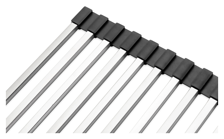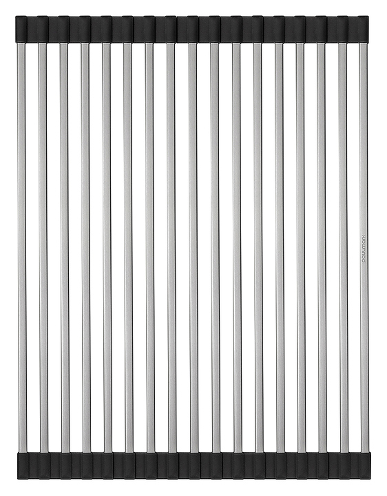 Ролл-мат Paulmark Extra R440-BS используется в качестве подставки для горячей посуды, сушилки для овощей и фруктов или коврика для разморозки продуктов. Благодаря двусторонним силиконовым наконечникам модель защищает поверхность и может быть размещена на столешнице, крыле мойки или в специальных направляющих чаши кухонной мойки. Ролл-мат обладает высокой термостойкостью, не подвержено деформации, легко чистится и не оставляет царапин на посуде, подходит для мытья в посудомоечной машине, использования в микроволновой печи и морозильной камере, сворачивается в рулон для удобного и компактного хранения. Изделие выполнено из нержавеющей стали и силикона. Характеристики: