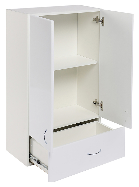 Шкаф ORANGE Смайл SM-60SR1 дополнит интерьер ванной комнаты. Благодаря подвесной конструкции модель не занимает много места, что позволяет экономить пространство, а также облегчает уборку. Модель оснащена 2 распашными дверцами с механизмом доводчика для плавного закрывания, 2 полками и ящиком с направляющими полного выдвижения. Корпус и полки выполнены из ДСП, фасад - из МДФ. В комплект поставки входят полка и крепления. Дополнительные характеристики: