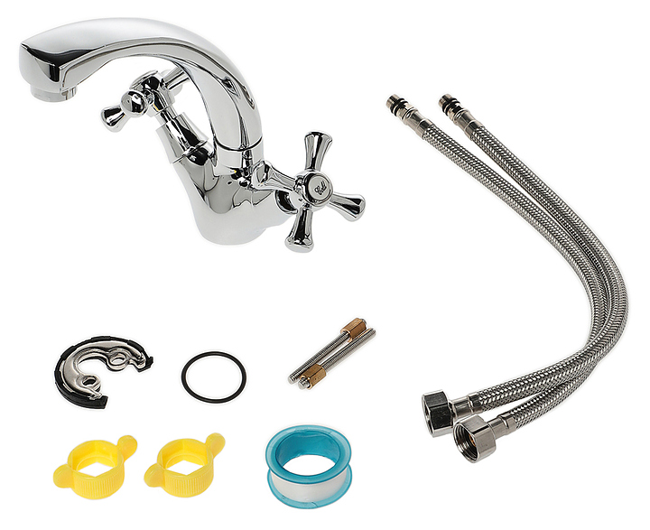 Смеситель для раковины ORANGE Classic M71-011cr предназначен для подачи горячей и холодной воды в ванных помещениях. Модель оснащена керамической кран-буксой, обеспечивающей плавный ход вентилей и бесшумное смешивание воды. Изделие выполнено из латуни, отличающейся прочностью, долговечностью и устойчивостью к перепадам температуры. В комплект поставки входят гибкая подводка и крепления. Особенности: