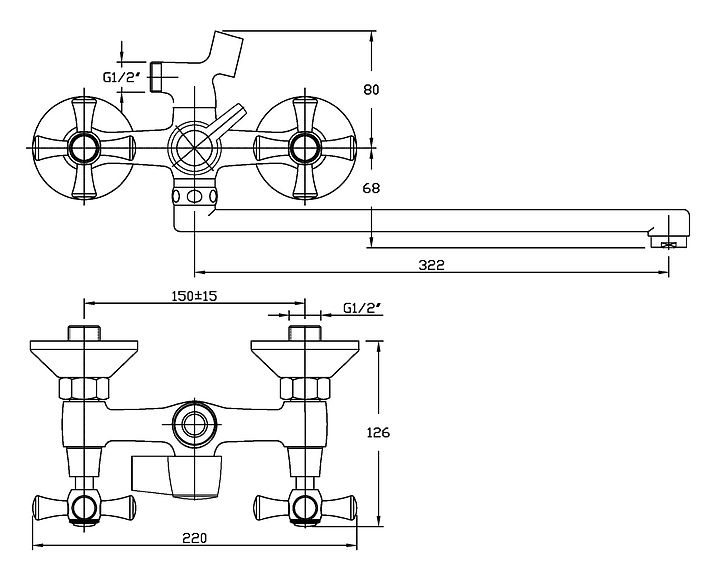 Смеситель для ванны и душа ORANGE Classic M71-211cr