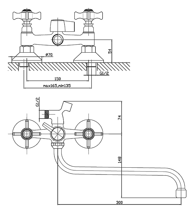 Смеситель для ванны и душа Agger Retro-X A1722200