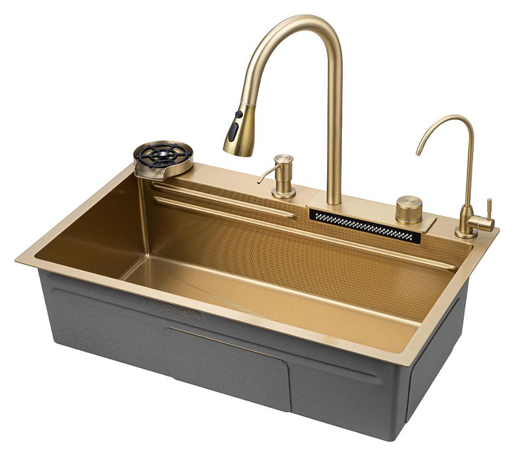 Мойка Savol S-SC003C предназначена для рационального планирования рабочего места на кухне. Модель оснащена панелью со смесителем, водопадом, краном для питьевой воды и ополаскивателем стакана. Изделие выполнено из нержавеющей стали, которая отличается прочностью, долговечностью, устойчивостью к царапинам и коррозии. В комплект поставки входят разделочная доска из дерева и набор для установки. Дополнительные характеристики: