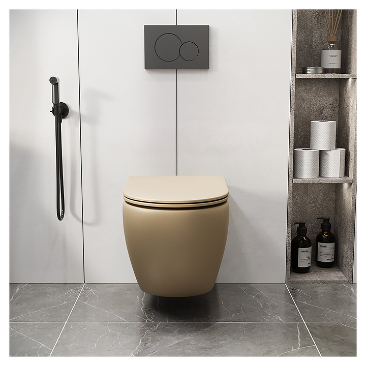 Унитаз подвесной с крышкой-сиденьем Grossman Color GR-4411BEMS бежевый матовый