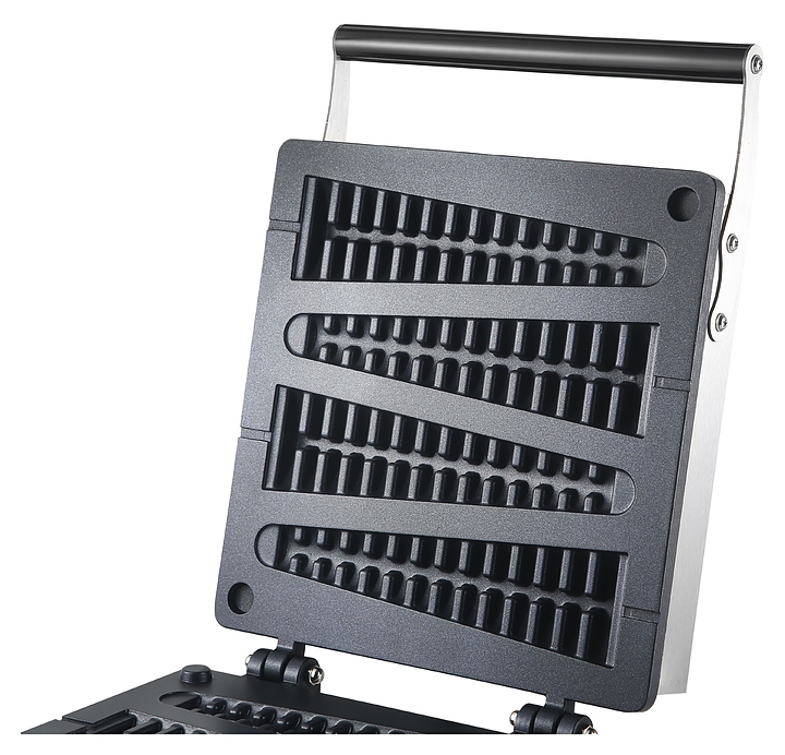 Вафельница EKSI LWB-4 Lolly используется на предприятиях общественного питания и торговли для выпечки вафель в форма конуса на палочке. Модель оснащена электромеханической панелью управления. Корпус выполнен из нержавеющей стали, жарочная поверхность - из литого алюминия с антипригарным покрытием. Дополнительные характеристики: