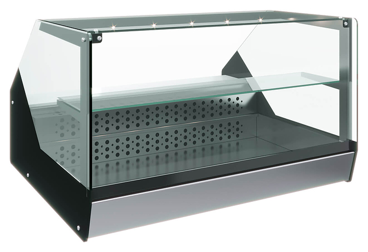 Настольная холодильная витрина KAYMAN ВСА-М1В предназначена для охлаждения, кратковременного хранения и демонстрации готовых блюд и полуфабрикатов на предприятиях общественного питания и торговли. Модель оснащена неохлаждаемой полкой, прямым передним стеклом, LED-подсветкой внутреннего объема и энергосберегающими ночными шторками. Корпус выполнен из стали с термоизоляцией из пенополиуретана, экспозиционная поверхность - из нержавеющей стали, полка - из стекла. В комплект поставки входят 3 GN 1/1 глубиной 65 мм. мм.Особенности: