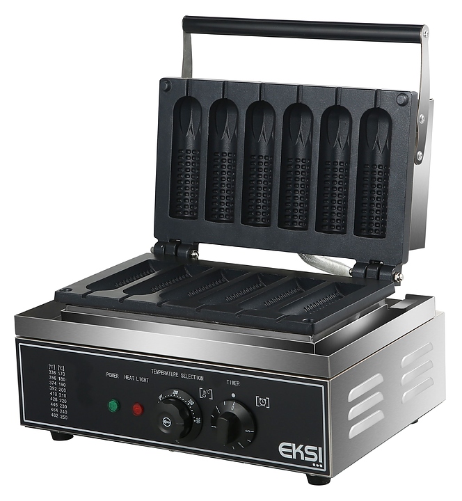 Аппарат для корн-догов EKSI ECD-6 используется на предприятиях общественного питания и торговли для приготовления хрустящих сосисок в тесте. Модель оснащена регулятором температуры и таймером. Корпус выполнен из нержавеющей стали, рабочая поверхность - из алюминия. Дополнительные характеристики: