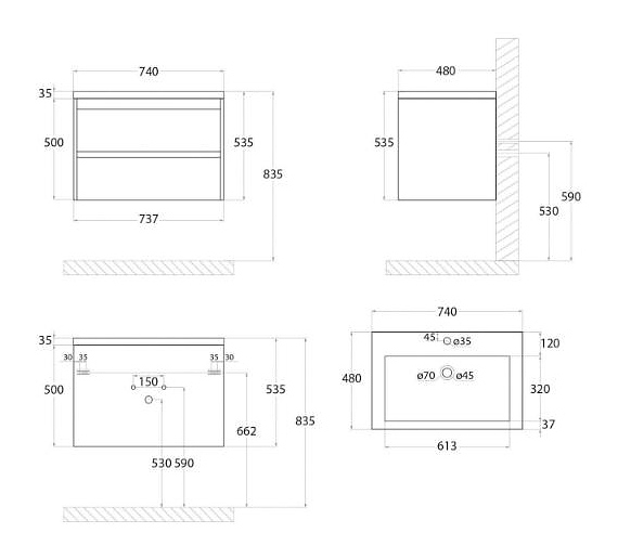 Тумба под раковину Art&Max Family-M-750-2C-SO-HG выполнена в современном стиле и прекрасно впишется в интерьер любой ванной комнаты. Благодаря подвесной конструкции модель не занимает много места и облегчает уборку. Тумба оснащена 2 выкатными ящиками с доводчиками скрытого монтажа и системой плавного закрывания. Фасад выполнен из ЛДСП. Тумба используется с раковиной AM-LAV-750-MR-A. Раковина и смеситель в комплект поставки не входят. Дополнительные характеристики: