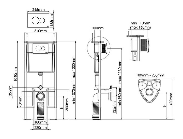 Унитаз подвесной с инсталляцией и кнопкой Bauedge Nimb BK0001-LUX+NV4501+NV7319