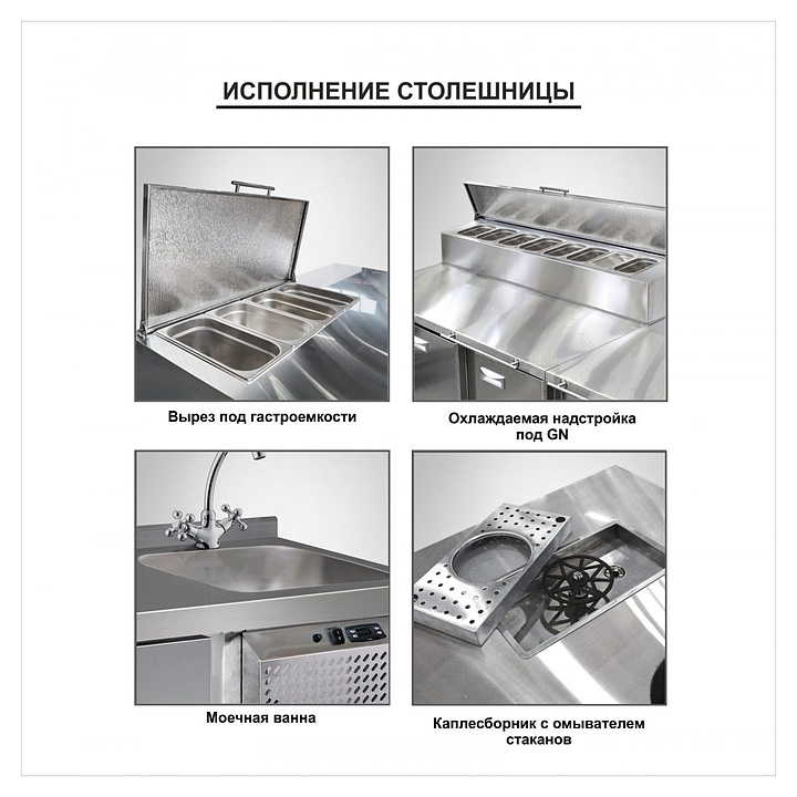 Холодильно-морозильный стол Finist КХС-700-1/5 предназначен для хранения замороженных полуфабрикатов и предварительно охлажденных готовых блюд, заготовок для салатов, молочной продукции и напитков на предприятиях общественного питания и торговли. Модель сочетает в себе 2 независимых рабочих объема и оснащена 2 панелями управления для регулировки температуры в камерах. Оборудование полностью выполнено из высококачественной пищевой нержавеющей стали. Особенности: