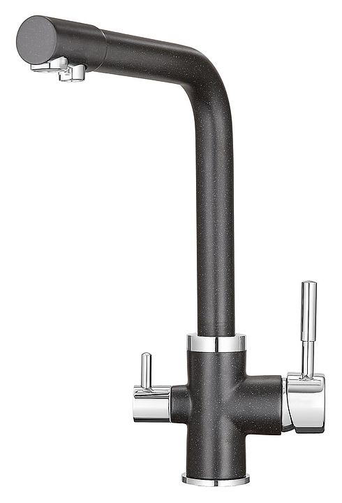 Смеситель Point PN3103B предназначен для подачи горячей и холодной воды в кухонных помещениях. Модель оснащена подключением к фильтру для питьевой воды и керамическим картриджем, обеспечивающим плавный ход рычага смесителя, контроль и точность при выборе напора и температуры воды. Изделие выполнено из латуни, которая отличается прочностью, долговечностью и устойчивостью к перепадам температуры. В комплект поставки входят гибкая подводка, переходник для подключения фильтра с питьевой водой и крепления. Особенности: