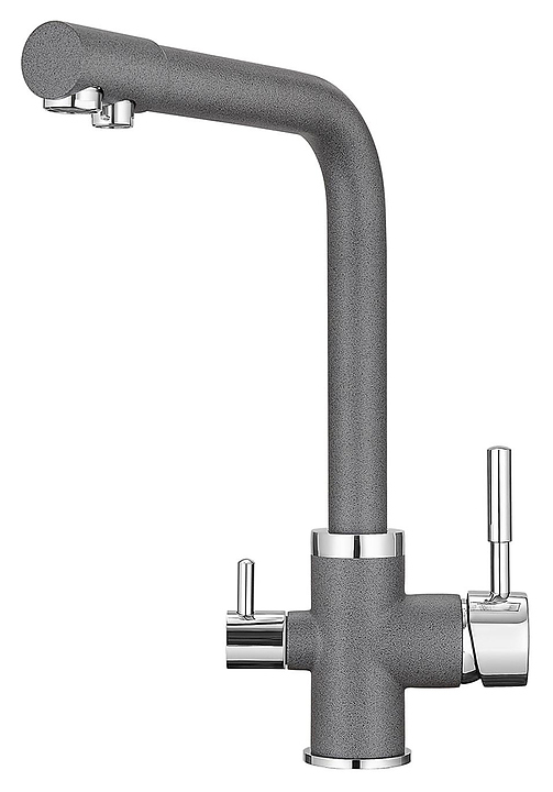 Смеситель Point PN3103GR предназначен для подачи горячей и холодной воды в кухонных помещениях. Модель оснащена подключением к фильтру для питьевой воды и керамическим картриджем, обеспечивающим плавный ход рычага смесителя, контроль и точность при выборе напора и температуры воды. Изделие выполнено из латуни, которая отличается прочностью, долговечностью и устойчивостью к перепадам температуры. В комплект поставки входят гибкая подводка, переходник для подключения фильтра с питьевой водой и крепления. Особенности: