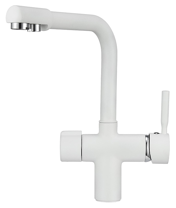 Смеситель Point PN3104W предназначен для подачи горячей и холодной воды в кухонных помещениях. Модель оснащена подключением к фильтру для питьевой воды и керамическим картриджем, обеспечивающим плавный ход рычага смесителя, контроль и точность при выборе напора и температуры воды. Изделие выполнено из латуни, которая отличается прочностью, долговечностью и устойчивостью к перепадам температуры. В комплект поставки входят гибкая подводка, переходник для подключения фильтра с питьевой водой и крепления. Особенности: