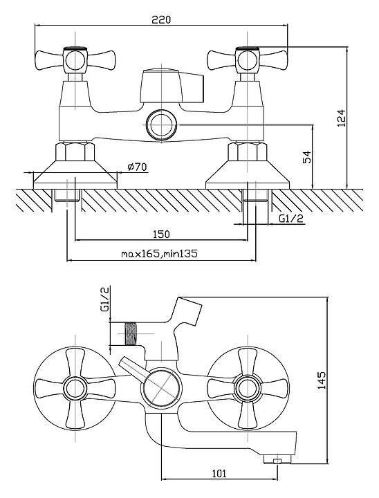 Смеситель для ванны и душа ORANGE Classic M71-212cr хром