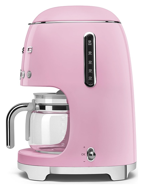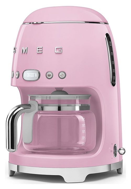 Кофеварка Smeg DCF02PKEU предназначена для приготовления кофейных напитков в частных домах и квартирах. Модель оснащена цветовым светодиодным дисплеем и часами с таймером. Корпус изготовлен из окрашенного металла, ручка и крышка - из пластика, нагревательная пластина - из нержавеющей стали, кувшин - из стекла. Особенности: