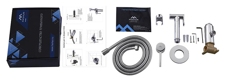 Гигиенический душ FASHUN A7505 предназначен для использования в туалетных комнатах. Керамический картридж обеспечивает плавный ход рычага смесителя, контроль и точность при выборе напора и температуры воды. Изделие выполнено из латуни, которая отличается прочностью, долговечностью и устойчивостью к перепадам температуры, оплетка шланга - из стали. Дополнительные характеристики: