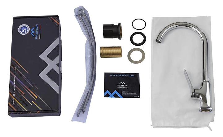 Смеситель FASHUN A4086 предназначен для подачи горячей и холодной воды в кухонных помещениях. Модель оснащена керамическим картриджем, обеспечивающим плавный ход рычага смесителя, контроль и точность при выборе напора и температуры воды. Изделие выполнено из латуни, которая отличается прочностью, долговечностью и устойчивостью к перепадам температуры. В комплект поставки входят гибкая подводка и гайка для крепления. Дополнительные характеристики: