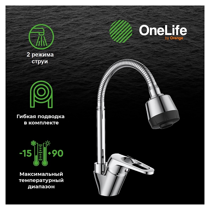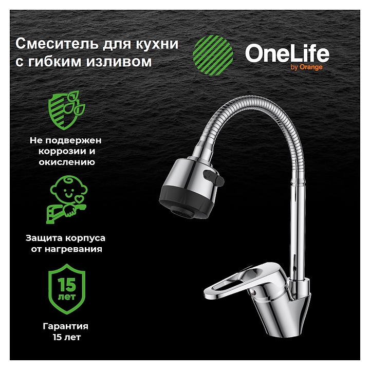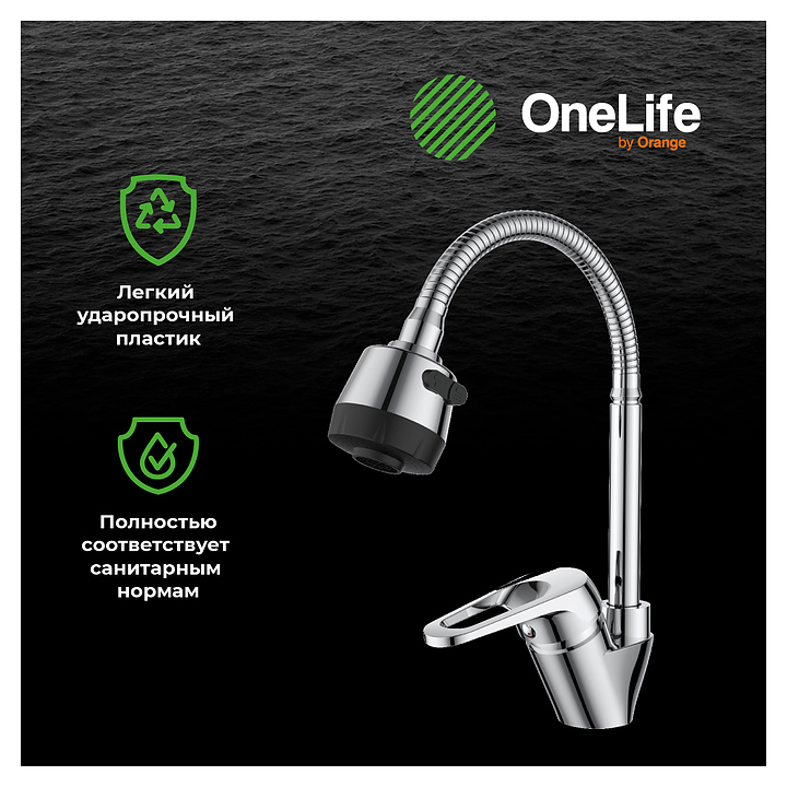 Смеситель для кухни ORANGE 1Life (OneLife by Orange) P01-004cr с гибким изливом, хром