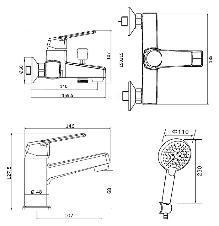 Набор ORANGE OneLife P02-311b предназначен для использования в ванных комнатах. Модель оснащена смесителем для раковины и ванны с душем, настенным держателем для ручного душа с регулировкой наклона, ручной лейкой с силиконовыми наконечниками и шлангом в металлической оплетке с защитой от перекручивания, а также ерамическим картриджем, обеспечивающим плавный ход рычага смесителя, контроль и точность при выборе напора и температуры воды, и аэратором для создания мягкой ровной струи без разбрызгивания. Изделие выполнено из полимера, который отличается прочностью, устойчивостью к коррозии и окислению, а также исключает возможность обжечься при касании. В комплект поставки входят смеситель для раковины, смеситель для ванны с душем, держатель для ручного душа, ручная лейка, шланг, крепления и гибкая подводка. Особенности: