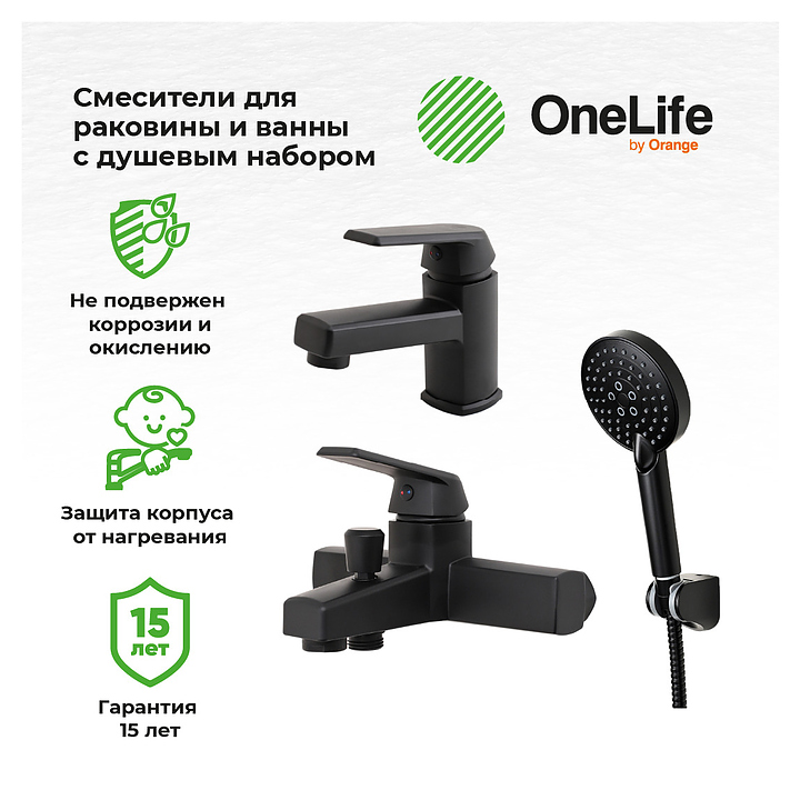 Комплект смесителей с душевым гарнитуром ORANGE OneLife P02-311b черный