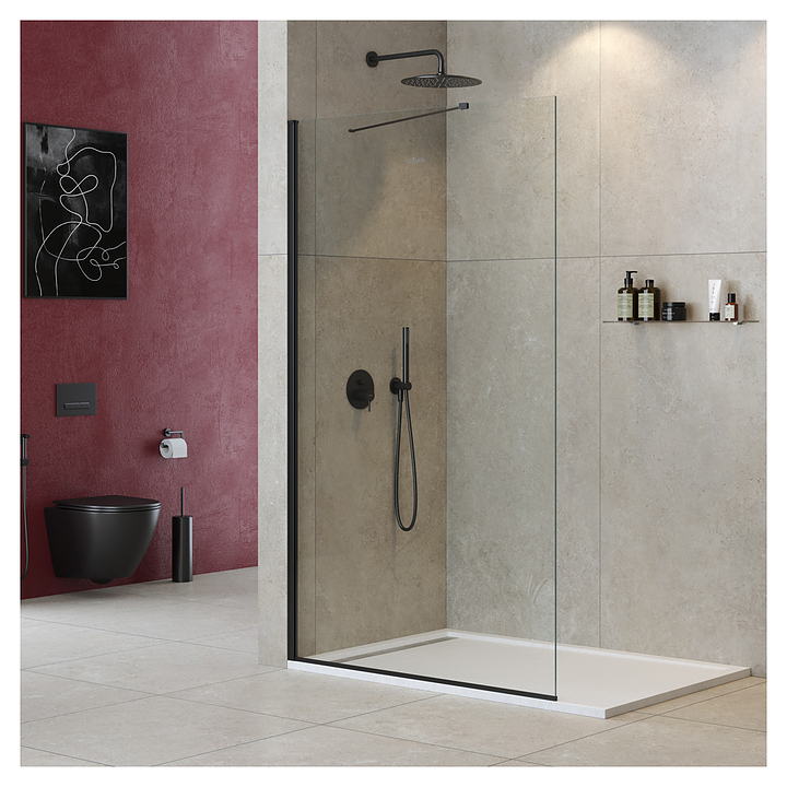 Перегородка душевая CEZARES LIBERTA-L-1-TB-125-C-NERO 125х195 см, стекло прозрачное, профиль черный