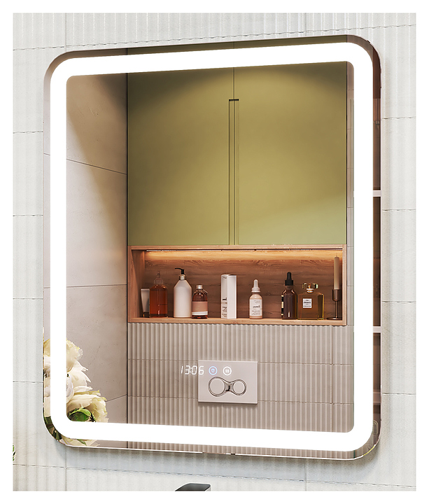 Зеркало VIGO Grani Luxe выполнено в современном стиле и отлично дополнит интерьер любой ванной комнаты. Благодаря подвесной конструкции модель не занимает много места, что позволяет экономить пространство в ванной комнате. Зеркало оснащено LED-подсветкой по периметру, сенсорным управлением, встроенными часами и функцией антизапотевания с таймером отключения. Корпус выполнен из прочного ABS-пластика, за счет уникальной технологии производства изделие не подвержено ржавлению амальгамы, дымчатости и ухудшению отражающей способности в помещениях с высокой влажностью. Дополнительные характеристики: