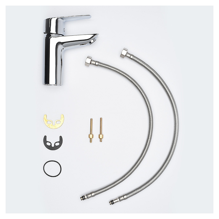 Смеситель для раковины AQUAme Prato AQMP6110 предназначен для подачи горячей и холодной воды в ванных помещениях. Керамический картридж с ограничителем горячей воды обеспечивает плавный ход рычага смесителя, контроль и точность при выборе напора и температуры воды. Модель оснащена системой быстрого монтажа и аэратором для создания мягкой струи без брызг. Изделие выполнено из латуни, которая отличается прочностью, долговечностью и устойчивостью к перепадам температуры. В комплект поставки входит донный клапан. Дополнительные характеристики: