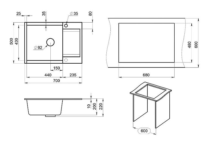 Мойка кухонная Granula ESTETICA 7003, графит