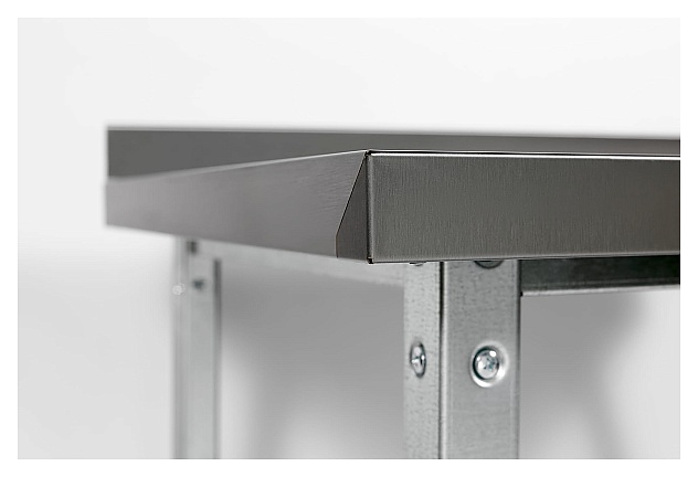 Производственный стол Restoinox СП-13/6-2БПП-ЭЦ предназначен для обработки продуктов питания, раскатки теста и хранения кухонного инвентаря, также для размещения малогабаритного оборудования на предприятиях общественного питания и торговли. Модель оснащена бортами с 2 сторон и сплошной полкой, усиленной ребром жесткости из оцинкованной стали. Ножки выполнены из уголка 40х40 мм из оцинкованной стали с пуклевкой, рабочая поверхность и полка - из нержавеющей стали Aisi 430, столешница усилена листом ЛДСП. Особенности: