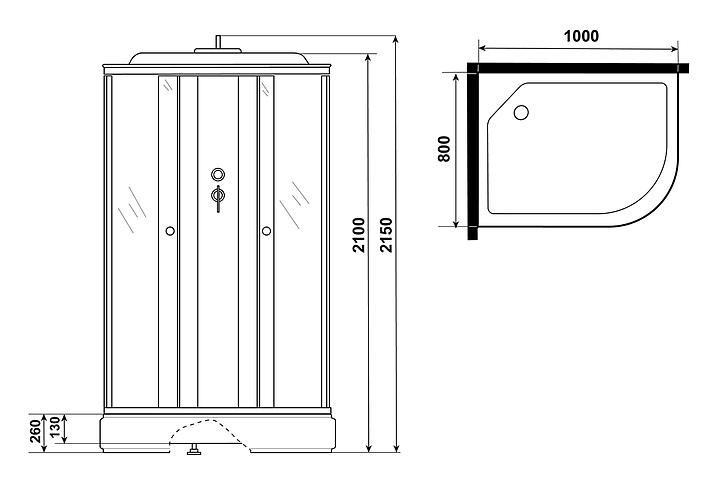 Кабина душевая Niagara Promo P100/80/26L/MT 100х80х215 см, левая