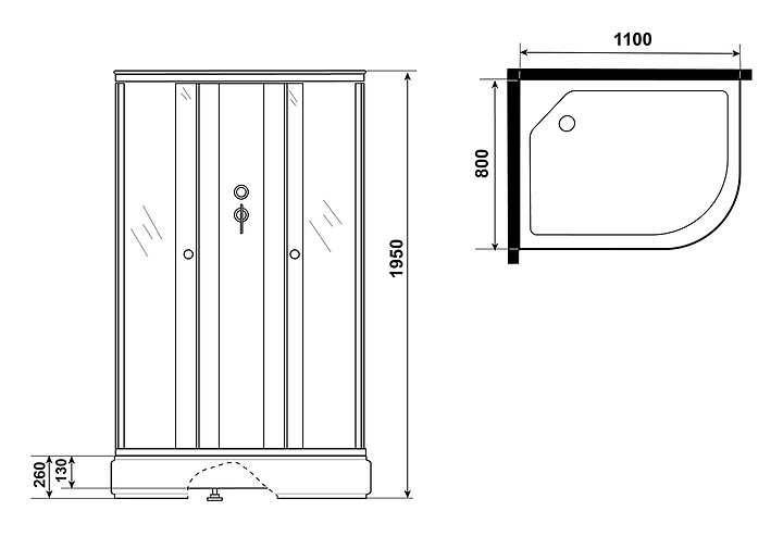 Кабина душевая Niagara Promo P110/80/26L/MT/BK 110х80х195 см, левая
