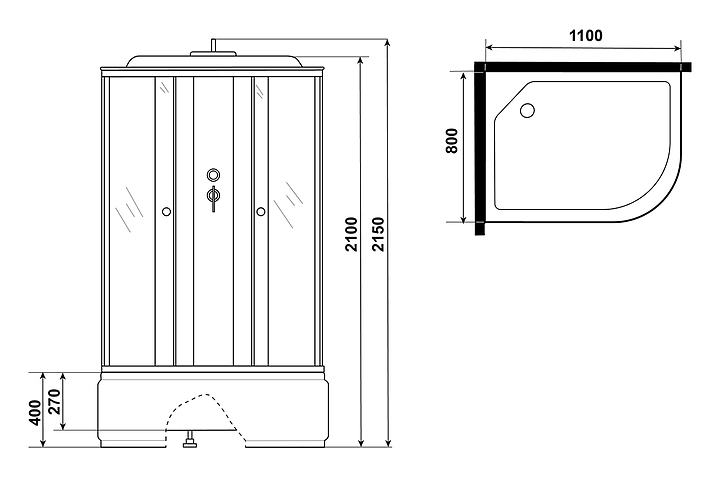 Кабина душевая Niagara Promo P110/80/40L/MT 110х80х215 см, левая