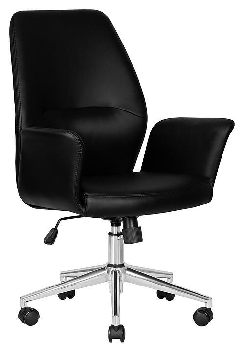 Офисное кресло DOBRIN 125B-LMR SAMUEL предназначено для комфортного размещения руководителя в офисах различных учреждений. Модель оснащена основанием в виде пятилучья с пластиковыми роликами для легкого перемещения, мягким сиденьем фигурной формы с механизмом вращения Butterfly, подлокотниками с чехлами и эргономичной спинкой, которая оказывает хорошую поддержку. Каркас кресла выполнен из фанеры, основание из металла с хромированным покрытием, обивка - из экокожи. Изделие поставляется в разобранном виде. Особенности: